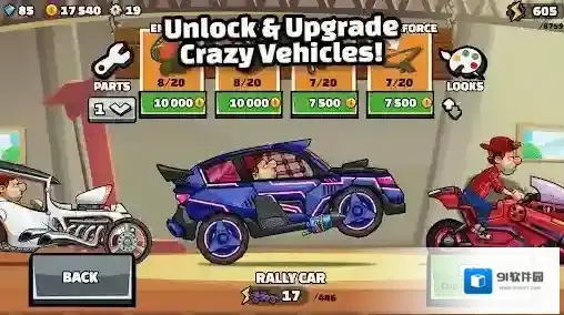 这个车子非常不错,基本不会卡住,很适合城市和山地,可以将引擎和轮胎提升到10级以上,至于跳跃一般5级就行了,最后就是铁笼看自己。