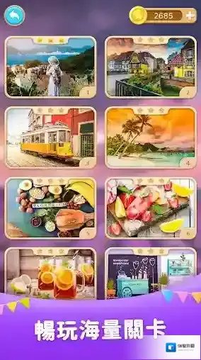 3、不同难度的关卡挑战,从简单到困难级别循序渐进,逐步解锁,遇到困难的时候,可以随时点击图片下的提示按钮得到线索。