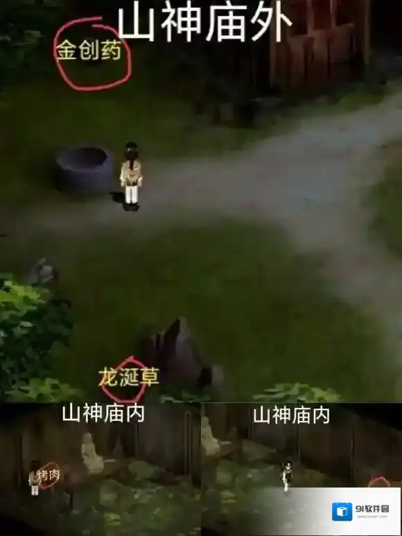 白河村木桥直走左拐把东西捡完,那边的房屋白河村民屋1里面有金创药,白河村一图其他地方物品等如图: