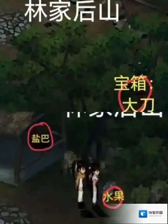 水月宫外,上面图中宝箱:止血草的位置,会有一把苗刀,过去与空宝箱交互会得到苗刀*1。