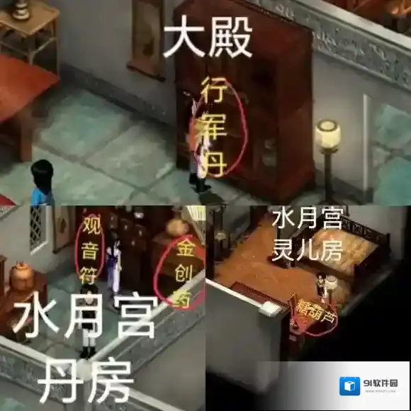 ps:水月宫丹房旁边,有泉水,站在台阶上可以喝水,可以恢复满体力和真气。