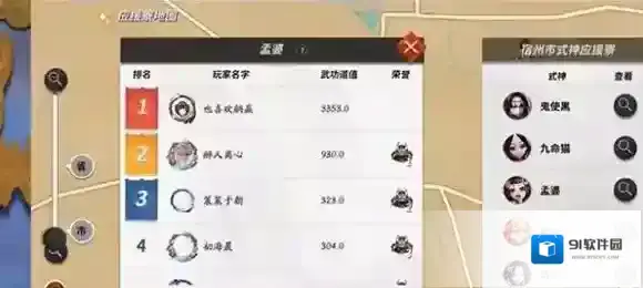 3、将看到游戏正式服中实时更新的式神排行榜信息。