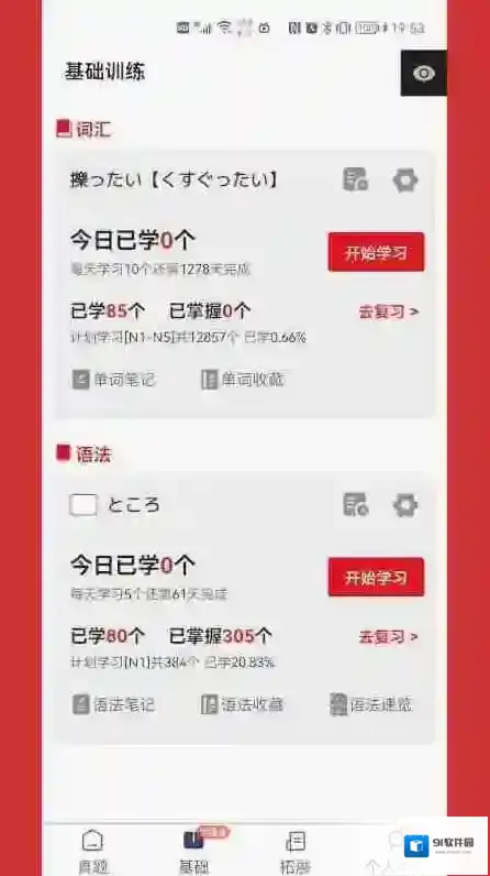 2、软件里面的日语考试题型有着清晰的分类,方便用户选择练习。