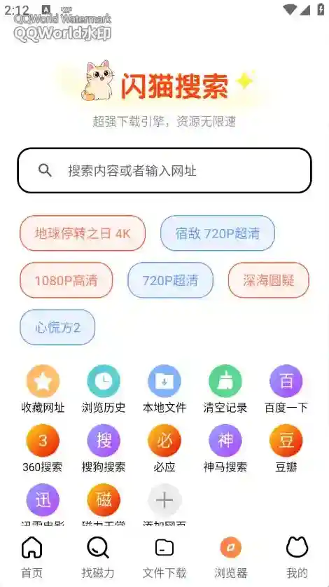 闪猫快下,免费下载各种资源,不管是下载视频、文件以及图片等都是刻意的,支持多种格式,还可以使用内置浏览器进行使用,下载速度快,软件中有强大的磁力搜索和下载引擎,快速下载需要的资源。