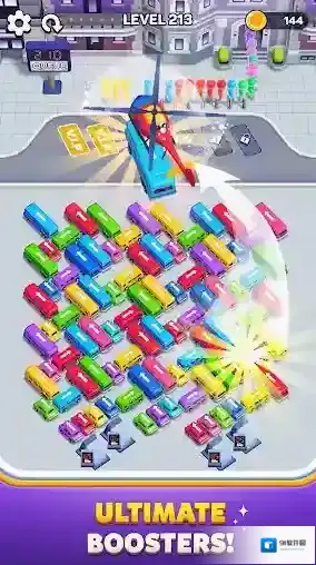 1、有策划的规划巴士的移动,根据颜色进行匹配,让所有巴士能够顺利开出,接走所有客人成功过关。