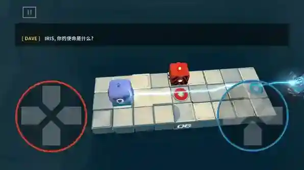 3、进入关卡后左边是控制红色机器人移动的摇杆,右边是控制蓝色机器人移动的摇杆。