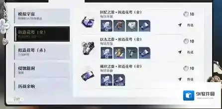 4、武器素材,用于升级武器,同样需要消耗体力刷拟造花萼来获取,此外,突破等级所需的怪物材料部分可以通过打怪掉落,但也有一部分需要刷拟造花萼。