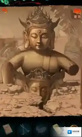 3、进入小门后,玩家可以看到众多的佛像。接着,玩家的目光被左侧躺着的佛像尖刺机关所吸引。这个机关设计精巧,在成功调整机关后,玩家可以获取珠子以及雕像断臂等重要物品。