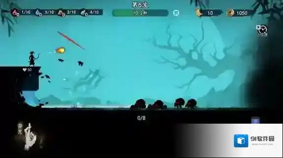 2、进入关卡后角色会自动攻击出现的敌人,怪物会陆续出现来攻击你的基地。