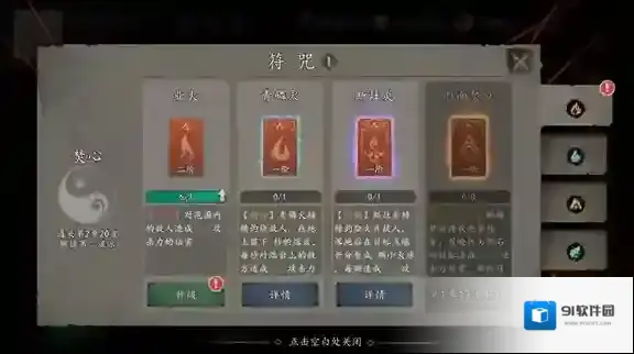 3、在关卡里右下角会自动生成各种属性的符咒让你使用,每次获得的符咒品质都是不同的。