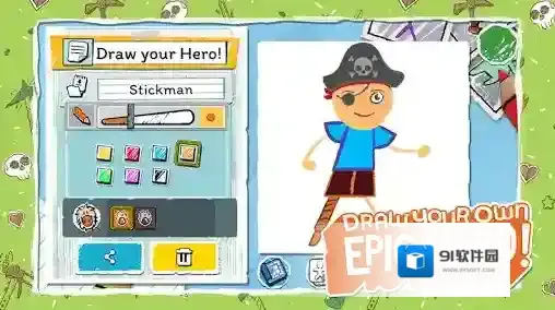 1、进入游戏后,首先要通过画笔来绘画出你的英雄,左侧可以调整画笔颜色、粗细等细节。