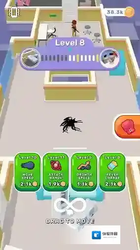 1、进入游戏,拖动屏幕即可控制毒液移动,靠近猎物之后就可以将其吞噬。