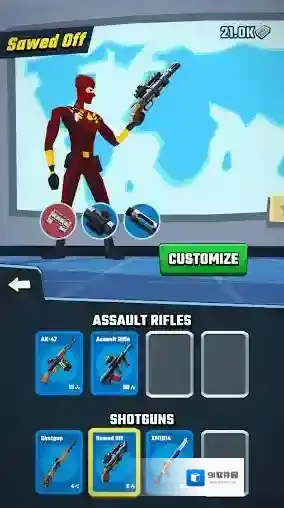 1、通过闯关或者开启幸运盒我们能够获得各种武器和改装部件。
