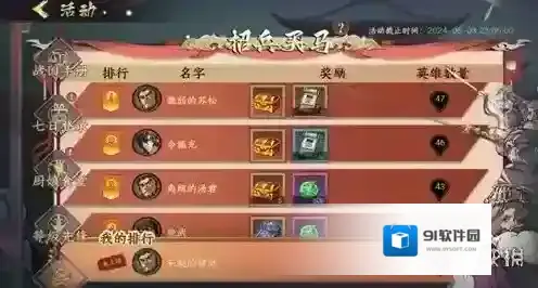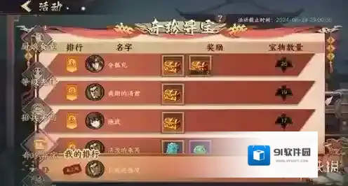 6月11日0点,将根据宝物数量结算排行奖励,玩家可赢取橙将自选箱、补天石等排行奖励。