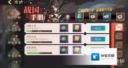 完成战国任务,即可赢取玉币、招募令、经验战策等丰厚奖励,更有金色品质的螳螂捕蝉战策,提供超高暴击率加成。