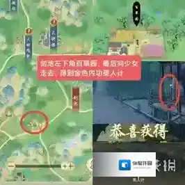 3、剑池左下角百草园,最后走向少女,可获得金色内功美人计。