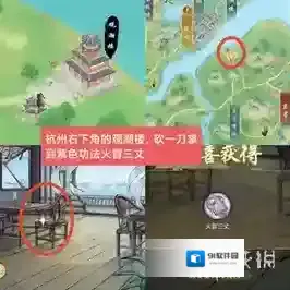 1、在杭州右下角的观楼处,砍一刀即可获得紫色功法火冒三丈。