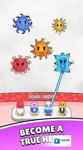 药丸堡垒(Pill Fortress),由Voodoo推出的一款休闲肉鸽类塔防手游,以药品大战病毒作为主题,采用Q萌可爱的卡通画风,带给你解压放松的趣味体验。在游戏中,我们需要设置各种药品来对抗想要感染你的病毒,通过消灭病毒来提升等级,从而去获得更多药品或者进行升级,将一波又一波的病毒全部消灭,获得最终的胜利!不仅如此,随着关卡的深入,我们将会解锁更多类型丰富的药品,提升自己的战斗力,去战胜更多的病毒!