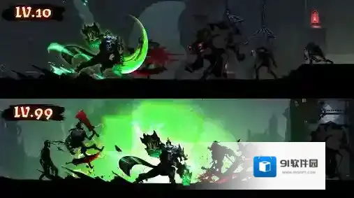 1、不断的升级你的角色,增强攻击力、防御、血量、攻速等众多属性,帮助你去战胜更多强大的暗影敌人。