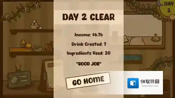 4、当完成所有的订单后就会结束一天,此时玩家可以消耗金币来解锁更多的配料去制作饮品。