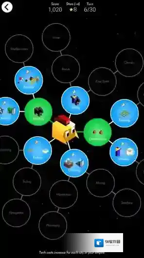 6、点击下方的tech tree可以打开科技树,能消耗星星来解锁不同的科技。